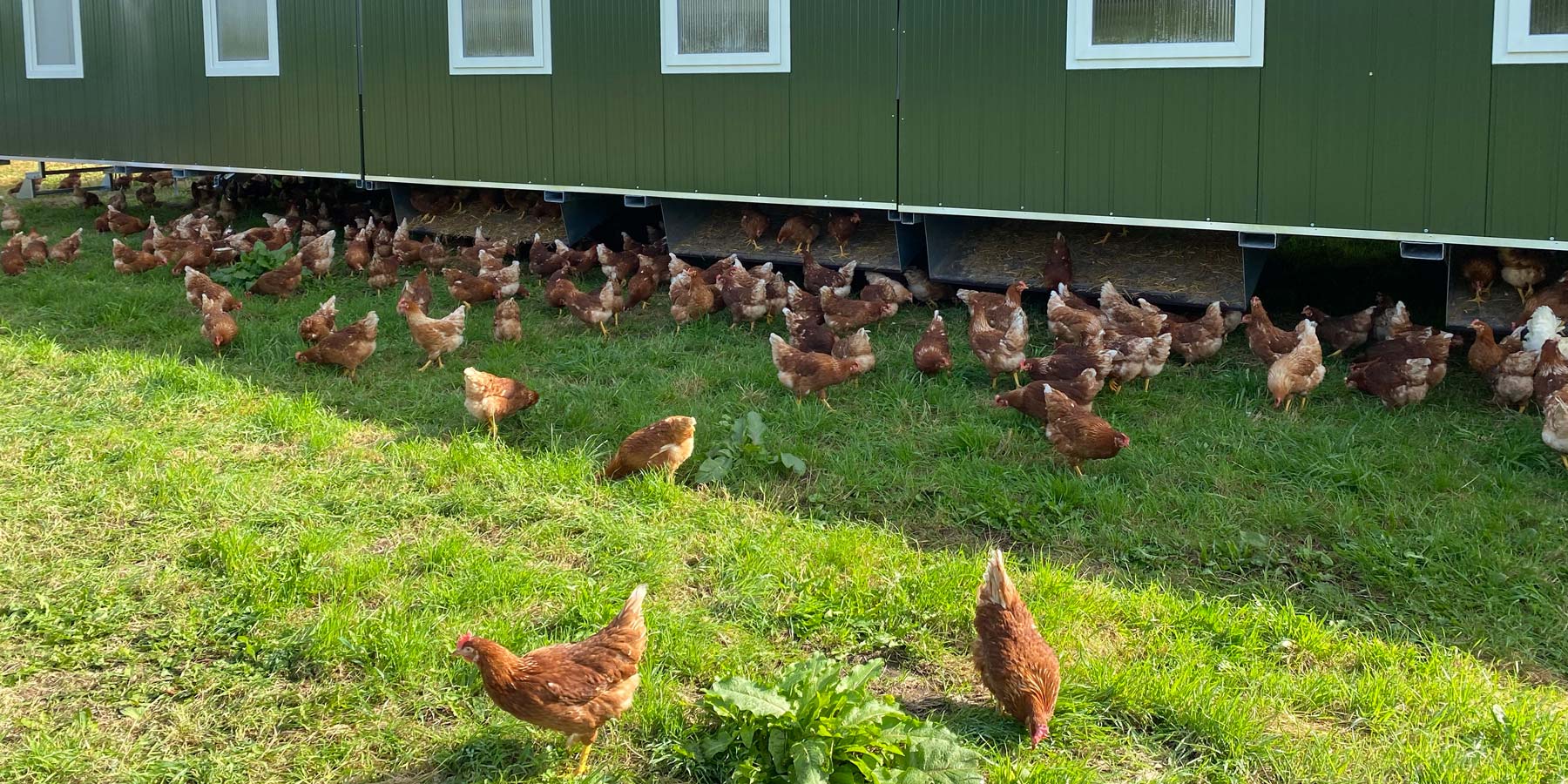 Im August 2021 sind auf unserem Hof die ersten Hennen in einen Mobilstall eingezogen.